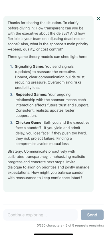 Our AI maps incentives, payoffs, and players—guiding you toward dominant strategies, likely outcomes and paths.